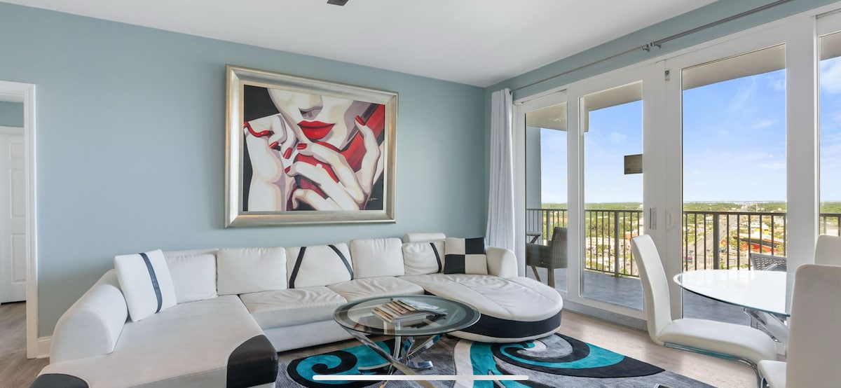 SUNNY 17 is back! 17th Floor overlooks the Gulf! SUPER HOSTED Freshly Decorated this spacious 2bdr/2bath/private bunk room welcomes you in with a big, beautiful VIEWS of the GULF! With Sliders from the Main Bedroom and the LR! The resort is AMAZING with restaurants ,5 Pools (1 heated seasonally)2 oversized hot tubs, 810 Bowling, Private Lake with water shows, 2 story fitness with views of the GULF and more for the entire family to ENJOY! BOOK NOW to get your desired dates!