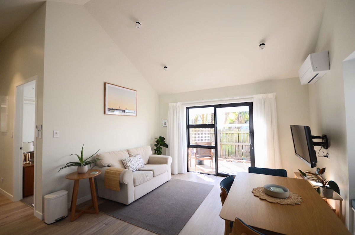 Set on Wellington's stunning south coast, this cosy third-story flat offers ocean views and is just steps from rugged beaches and scenic walks. About 10 minute drive to the Airport and 15 minutes drive to the CBD, it’s perfect for a single or couple but can accommodate up to four with a sofa bed. With the sea at your doorstep, it’s an ideal base to relax or explore Wellington’s coastal charm and natural beauty. Perfect for adventurers and those seeking tranquillity alike!