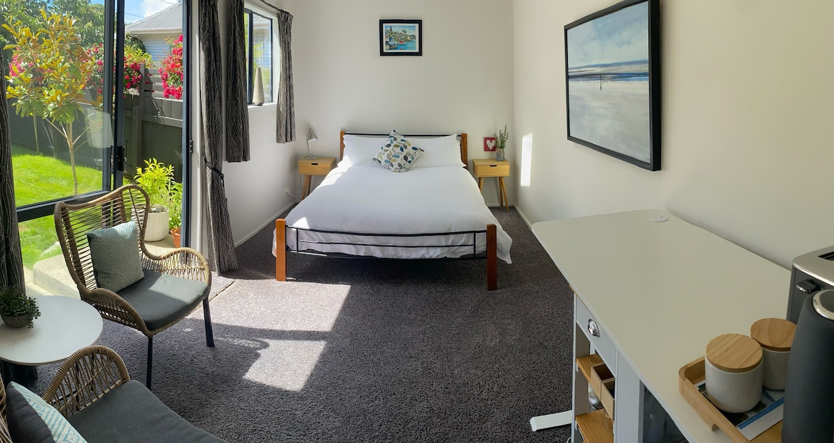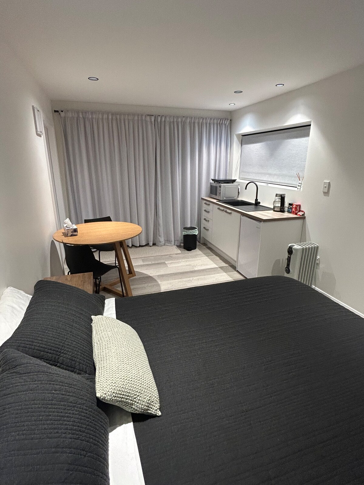Kick back and relax in this calm, stylish space, set back from the road this studio is very private & has everything you need. Whether it’s a convenient overnighter or an extended stay, our studio is ideal, with a short drive to Queensgate & Central Hutt or a short walk to the public train into Wellington city. Past guests have enjoyed the convenience of ample off street parking onsite. With Te Whiti park directly across the road, there are plenty of beautiful walks & fitness options too.