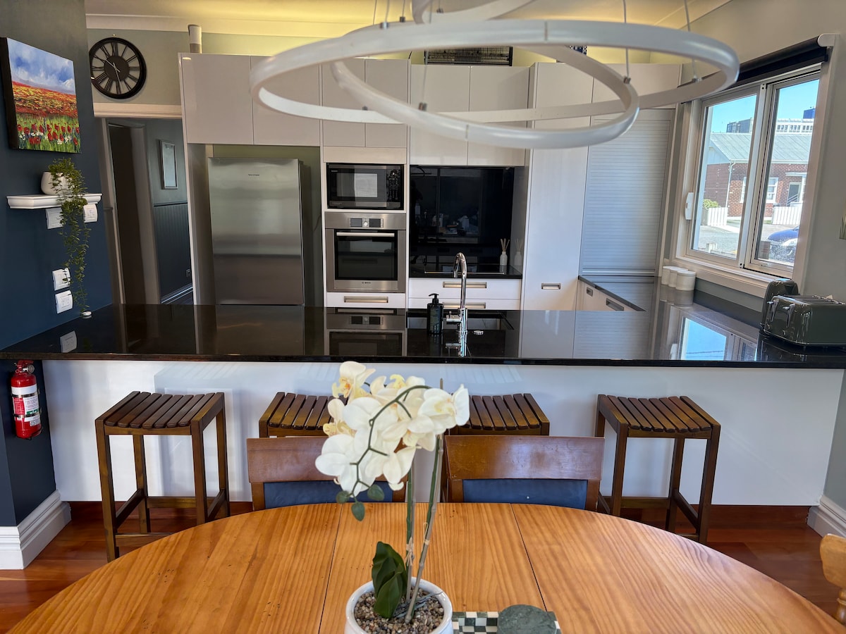 Escape to tranquility in our 2-bed flat with stunning sea views, tucked away off the street for a serene getaway. Please read ‘IMPORTANT NOTES’ before booking re. the stairs to the house 🏡 Location: - 10min drive from airport & town, or - $10-$15 Uber, or - short bus Rooms: - Room 1: King bed - Room 2: Two single beds - Lounge: Pullout sofa. - Fully equipped kitchen & laundry Check-in 2 pm; check-out 10 am. Sorry can’t offer flexible times at the moment TV feat.access to streaming services