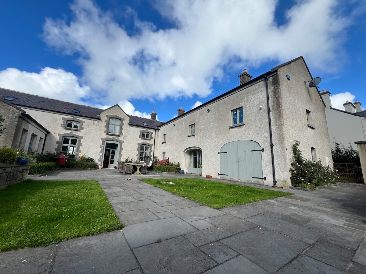 This is a self-contained apartment within a tastefully restored 19th century stable building. It has it all - modern conveniences, comfortable living and bedroom spaces and a walk-in shower. Outdoors is a large patio area within a walled courtyard with seating, ceramic BBQ and a wood-fired sauna. It is set in a peaceful location at the foot of knocknarea but yet close to all the attractions of Strandhill and the wider Sligo area. Welcome to Rathcarrick.
