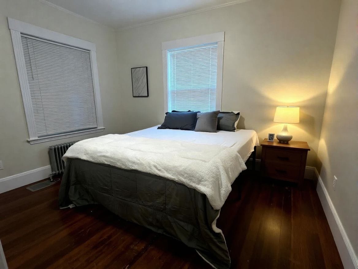 Modern 2BR/2BA home for families, groups, or business travelers: • 2 bedrooms with queen beds • King leather sofa bed in living room serves as master sleeping area • 2 bathrooms with rainfall showers • Full kitchen, open living/dining, smart TVs, fast Wi-Fi • In-unit washer/dryer, central A/C & heat • Private and on-street parking • Quiet neighborhood near shops, parks, transit & Boston attractions.