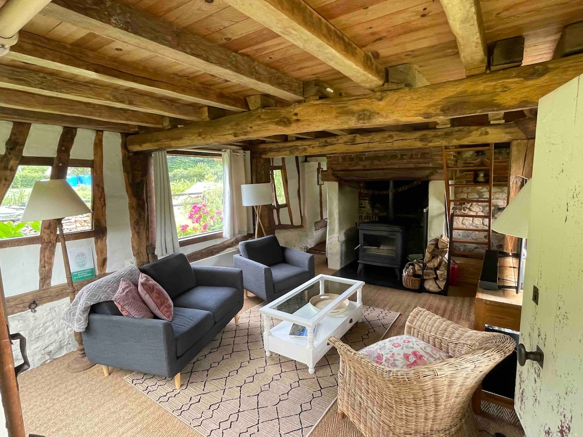 Charmant four à pain ancien en colombages, situé en bord de ruisseau il se compose de : - Salon avec un poêle à bois, - Cuisine, - A l’étage : -salle de douche/WC accessible par une échelle de meunier (voir photos), -chambre avec un lit 160x200 avec vue sur le ruisseau, accessible par une échelle de meunier (voir photos), Chambre et salle de bain ne communiquent pas. Salon de jardin, BBQ, parking privé, bois de chauffage inclus Note autre gite, la Maison de pierres, est à 100m