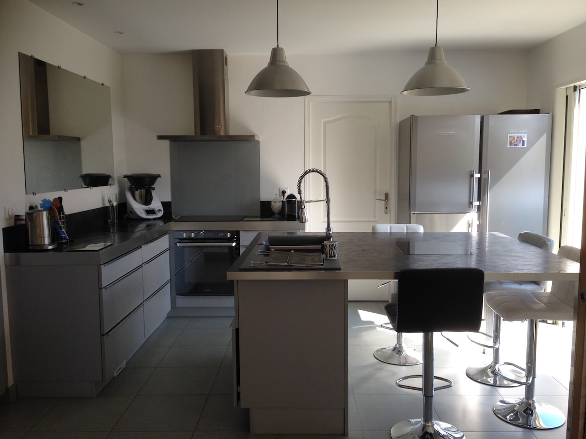 Meublé de tourisme 5 étoiles depuis 2024, accordé pour 2 personnes Ce classement haut de gamme est le gage d'un niveau de confort supérieur doté d'aménagements et d'équipements de très bonne qualité. Pour un séjour au calme, en couple ou en famille, maison indépendante à la campagne, équipée et décorée avec soin. Nous l’avons souhaitée lumineuse, confortable et moderne tout en gardant le cachet de « l’ancien » avec son mur et sa cheminée en pierres apparentes.