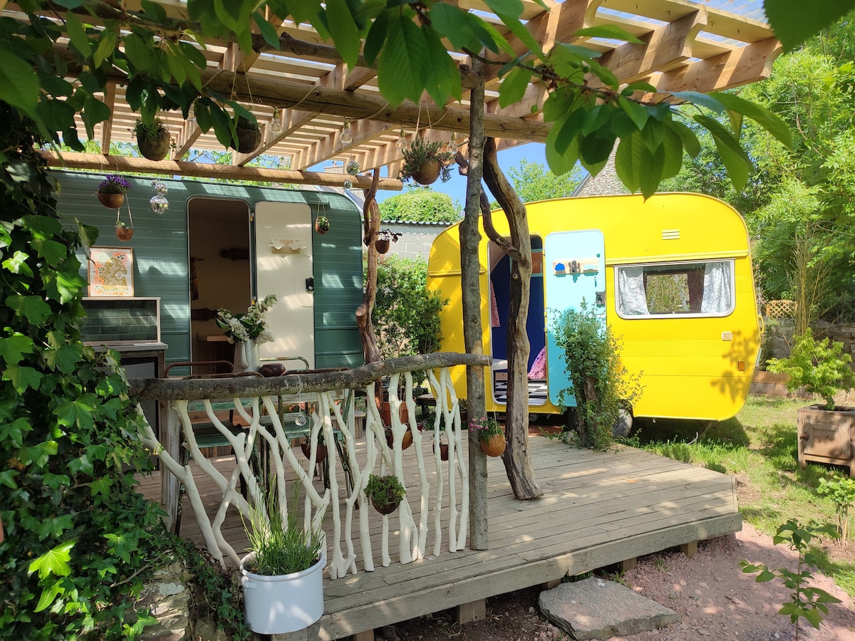 Offrez vous une parenthèse bucolique dans nos caravanes uniques et insolites. Entre l'Orne à parcourir en kayak, la voie verte pour les amoureux du cyclo, et les randonnées sublimes de Suisse normande... Chacun son prétexte pour venir vivre un instant qui vous appartient dans nos caravanes insolites. .Cuisine, sanitaires et douche privative sur la terrasse couverte.
