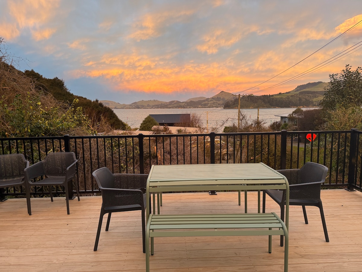 Want stunning views to wake up to? a quiet and relaxing space? ...you found MacStay! Our sun filled studio (22m2) is architecturally designed & has the ‘wow’ factor. Wake up to birdsong and the ever changing harbour scene. In beautiful Macandrew Bay, on the stunning Otago Peninsula but just 15 min drive from the city and a 1km stroll to the cafe and beach. Your own private entrance and deck, and beautifully appointed en suite and bedroom space. Come and relax. ‼️steps/uphill path to entrance
