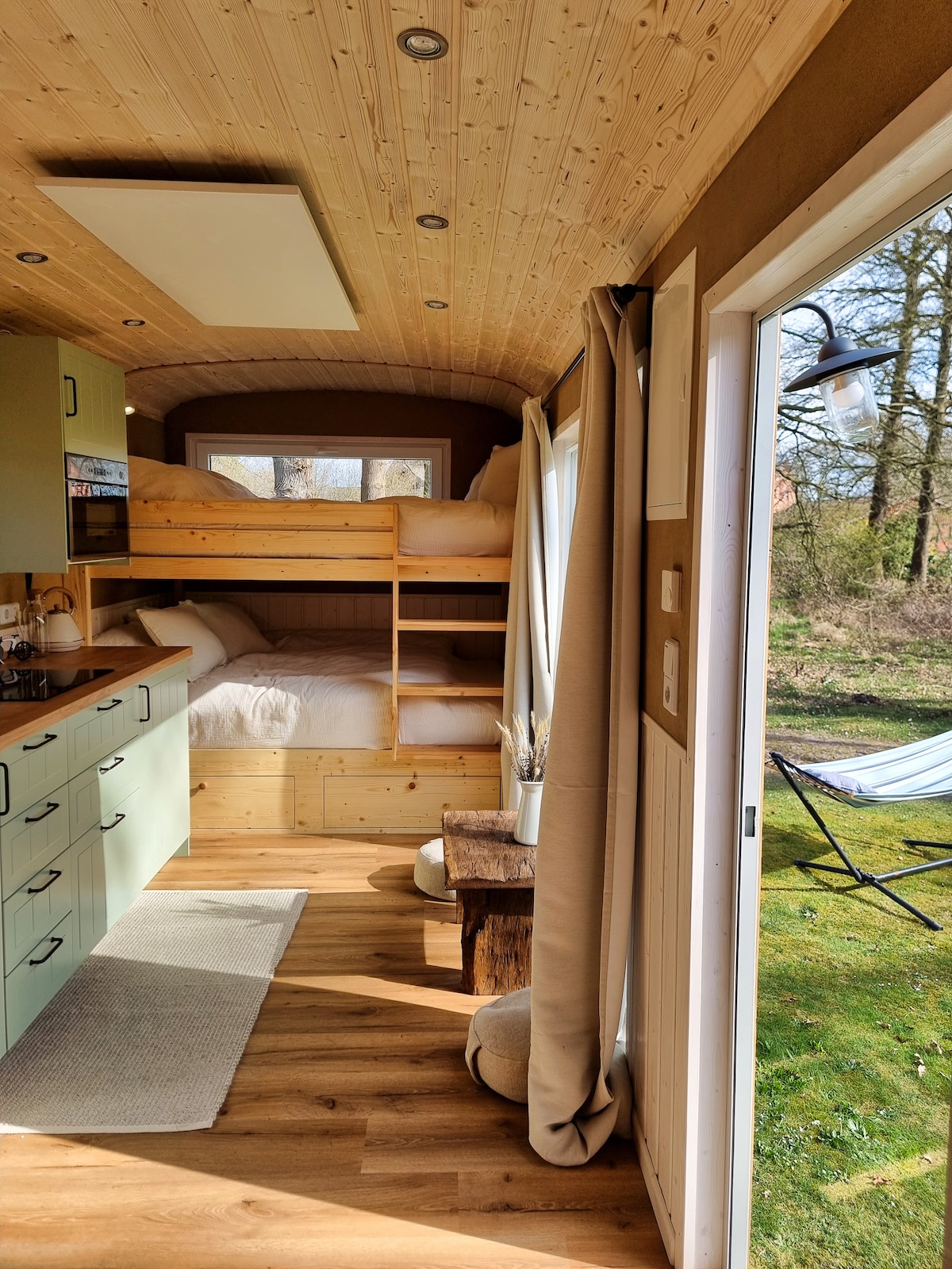 Inmitten des Biosphärenreservats Niedersächsische Elbtalaue erwartet Euch ein liebevoll gestaltetes Tiny House, das mit seiner persönlichen Note und durchdachten Details zum Verweilen einlädt. Nur zehn Gehminuten vom idyllischen Sumter See entfernt, verbindet es naturnahes Wohnen mit modernem Komfort. Der helle Wohnraum wurde mit natürlichen Materialien gestaltet und große Fenster schaffen eine harmonische Verbindung zur umgebenden Natur, sodass Ihr Euch sofort wie zu Hause fühlt.