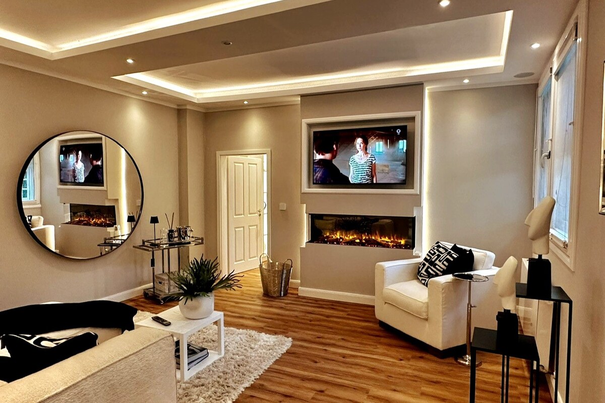 75 qm große Hotel- Luxusuite mit täglichem Housekeeping und buchbarem Frühstücksservice. Die Einrichtung und Ausstattung lässt keine Wünsche übrig. Besondere Highlights sind unter anderem ein toller Elektrokamin im Wohnzimmer sowie eine grandiose Küche mit eigenem Kaffeevollautomaten.