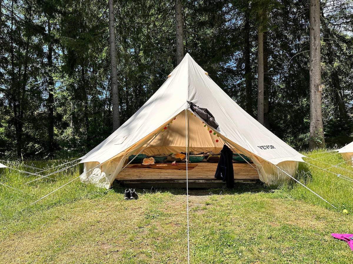 Neue Termine ab März 2026- gern jetzt schon vormerken! Unser großes Zelt lädt dich zu einer besonderen Auszeit ein – ruhig, naturnah und gemütlich. Es steht abgeschieden auf einer Wiese mitten auf unserem liebevoll bewirtschafteten Bauernhof. Der Weg dorthin führt durch den Stall – ganz authentisch und manchmal ein wenig staubig.