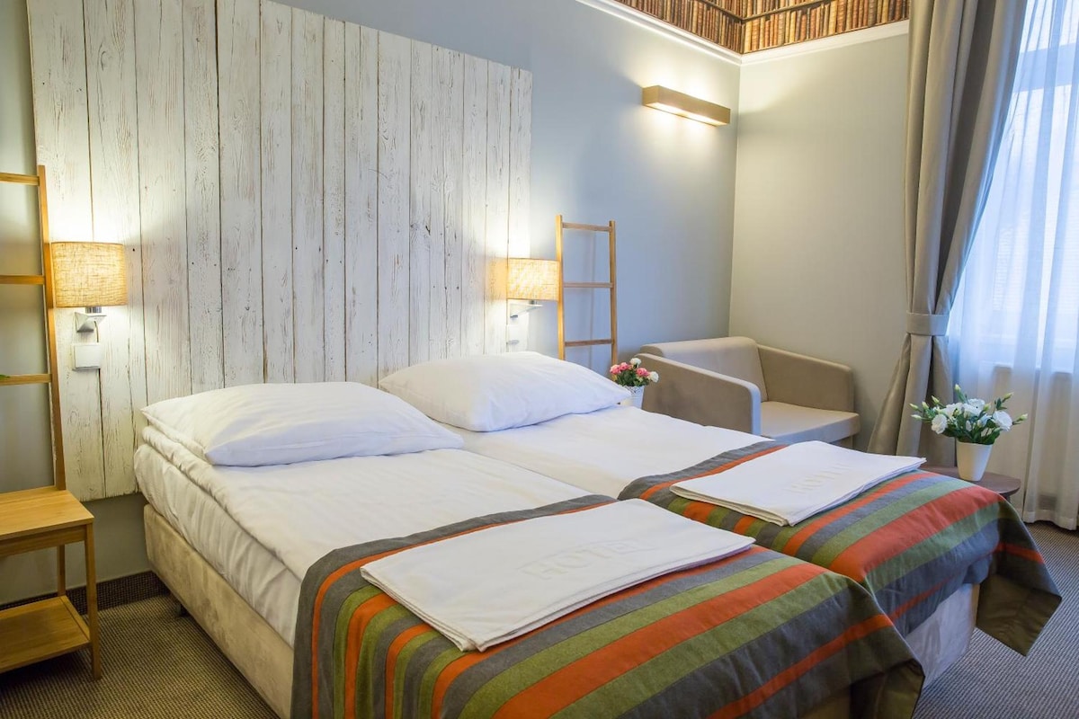 Wyjątkowy pod każdym względem pokój. Dałbym mu 4***. To nasza najnowsza propozycja dla gości, zaprojektowany przez zespół świetnych architektów. Jego unikalny design, kolorystyka i klimat zachęca do dłuższego pobytu i wypoczynku. Naszym celem było stworzenie ciepłego, klimatycznego miejsca, które daje poczucie komfortu i pozwala prawdziwie odpocząć. Udało się stworzyć pokój wyjątkowy, zaskakujący. Wpisuje się w najnowsze trendy, wymykające się typowym standardom hotelowym.