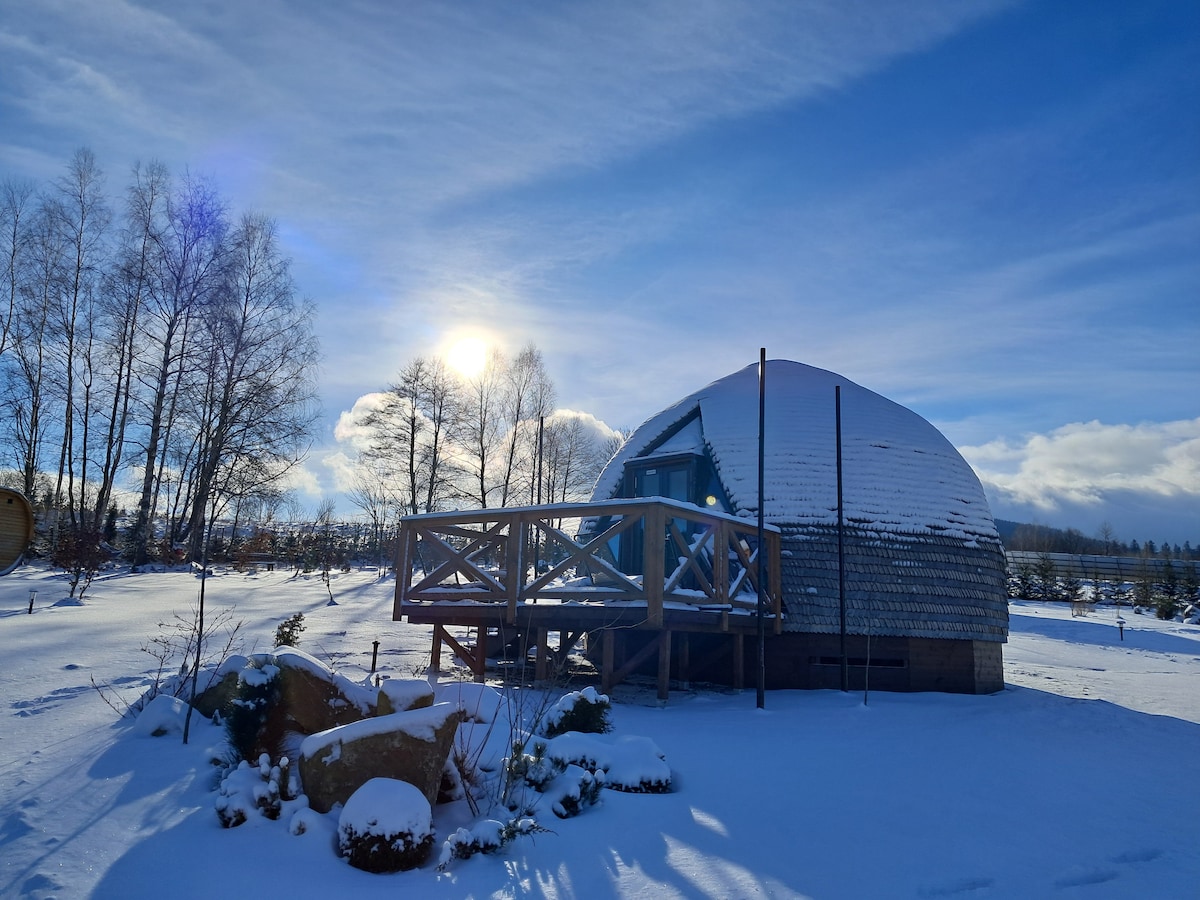 Luksusowe namioty sferyczne, które oferujemy, znajdują się w szczerym polu. Roztacza się stąd widok na zapierającą dech w piersiach panoramę Karkonoszy. Tuż obok znajduje się las, którego kojący szum dopełnia każdy dzień. Nasze przestronne domki utrzymane są w nowoczesnym wystroju. Są wyposażone w łóżka, kuchnię, łazienkę, mają ogrzewanie, co pozwoli Ci całkowicie skupić się na odpoczynku, a wysoka jakość naszego glampingu zagwarantuje relaks na miarę najlepszych hoteli.