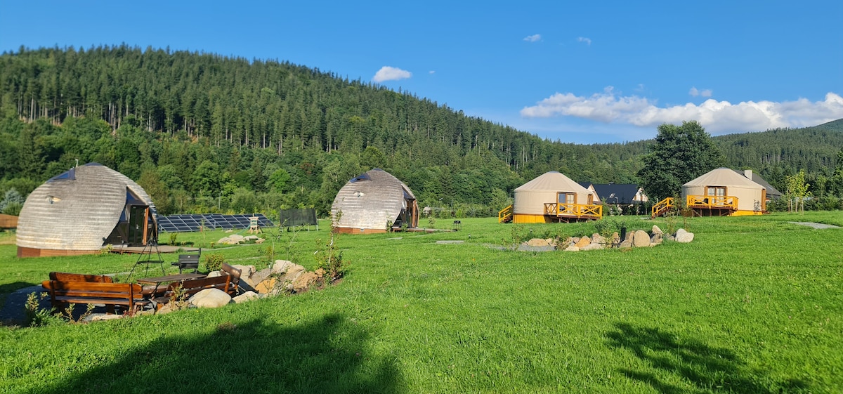 4 Żywioły- cisza, góry i bliskość natury sprawiają, że odpoczynek zaczyna się od pierwszej chwili. Czekają tu 4 całoroczne kopuły i 4 jurty z łazienką, wygodnymi łóżkami i prywatnym tarasem na poranną kawę i pyszne śniadanie podanym do drzwi🥐 Z dala od zgiełku – z książkami, planszówkami, ogniskiem i spokojem, który zostaje na dłużej. Blisko szlaków górskich, stoków narciarskich , zalewu i wielu miejsc wartych odwiedzenia.