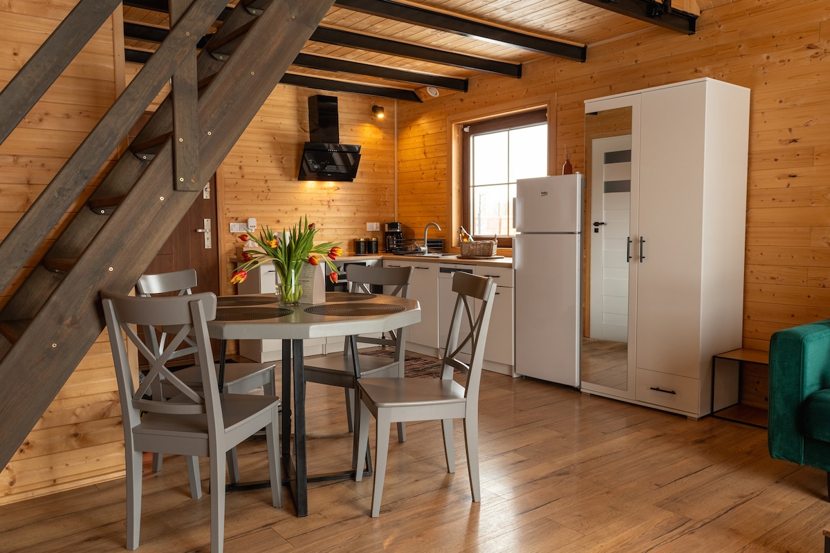 Twój dom poza domem. Mając na względzie dobrostan Gości domek został stworzony tak, aby każdy czuł się w nim dobrze. Sad oraz plantacja dają poczucie odosobnienia i nieskrępowania obecnością gospodarzy. Jest to miejsce dla osób ceniących ciszę, swobodę i komfort domowego wnętrza. Kuchnia została w pełni wyposażona, w tym w cukier, sól czy herbatę. Na dole sofa rozkładana, na górze open space - 2 łóżka kontynentalne dają wyjątkowy komfort snu zarówno parze, jak i osobom chcącym spać oddzielnie.