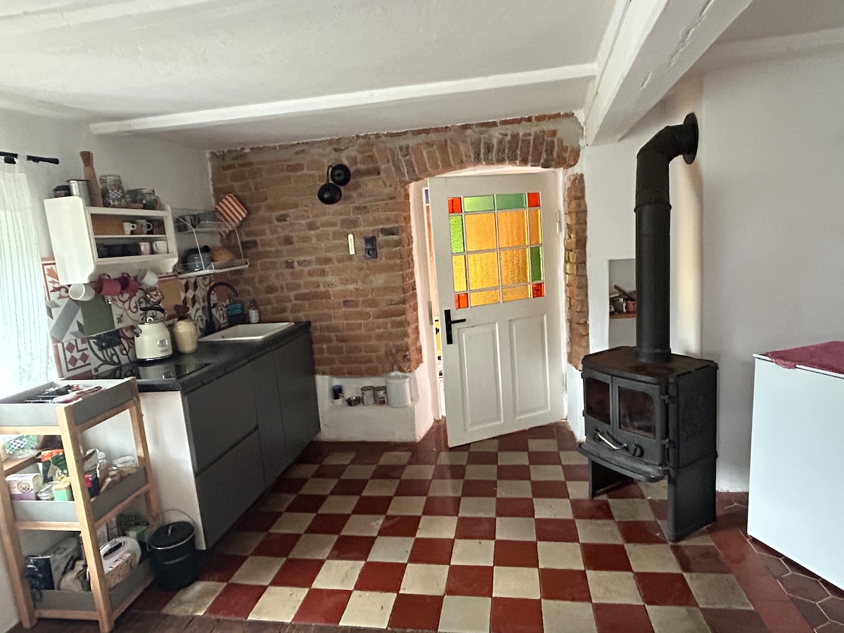 Nasza Stajnia jest częścią poniemieckiego domu, położonego na dwuhektarowej działce 160 m2, taras 70 m plus domek z szachulca, zachowano sprzęty dawnej wsi. Możliwość korzystania z prywatnej biblioteki w części domu, którą zamieszkują gospodarze. Łąka jest naturalnym środowiskiem dzikich zwierząt. Taras (miejsce obiadowe i wypoczynkowe) służy także do obserwacji przyrody. Obok domu stary sad (hamaki) słoneczne i zacienione miejsca dla szukających spokoju. Duża kuchnia. Jedna łazienka, prysznic.