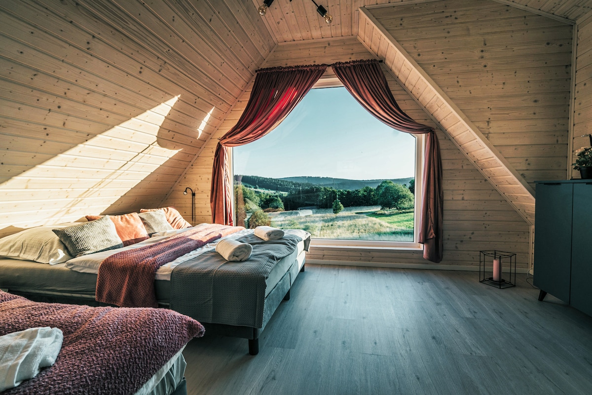 Chatka Borowka is a true tiny houses trend. It is full of sun, wood and has a view worth one million dollar and abit more. View of green mountains and city lights gleaming far away. Bad weather? You can turn on a projector or enjoy a sauna Chatka Borowka is located at the very border of Giant Mountains National Park and offers unlimited possibilities of relaxing in the open air. Chatka Borowka is a place made for lonely tourists and couples. With a bit of necessary luxury like air condition.