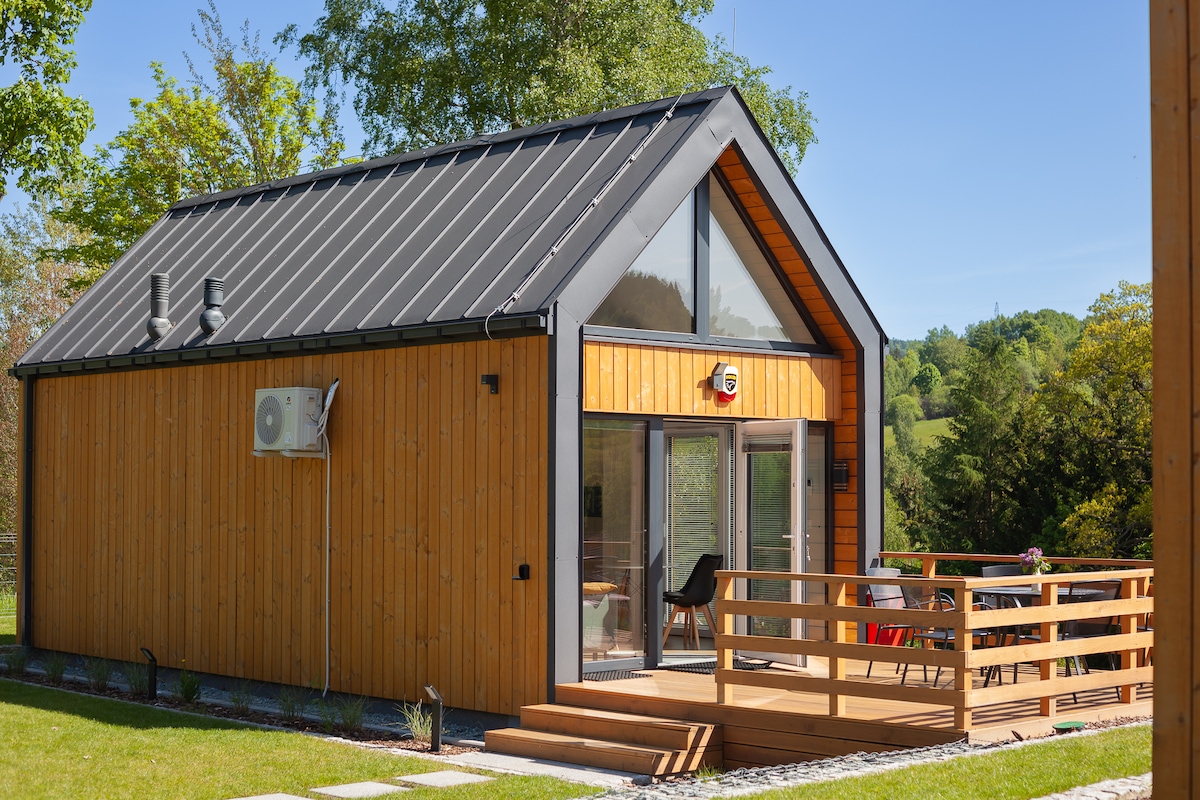 Całoroczny domek dla 4 osób, pow. 66 m2. Na pierwszym piętrze znajduje się przestronny salon z kominkiem, aneks kuchenny, dwie sypialnie dwuosobowe oraz łazienka z wanną, ogrzewane podłogi. Brak możliwości dostawki. W domku jest dostępne Wi-Fi, TV, książki.