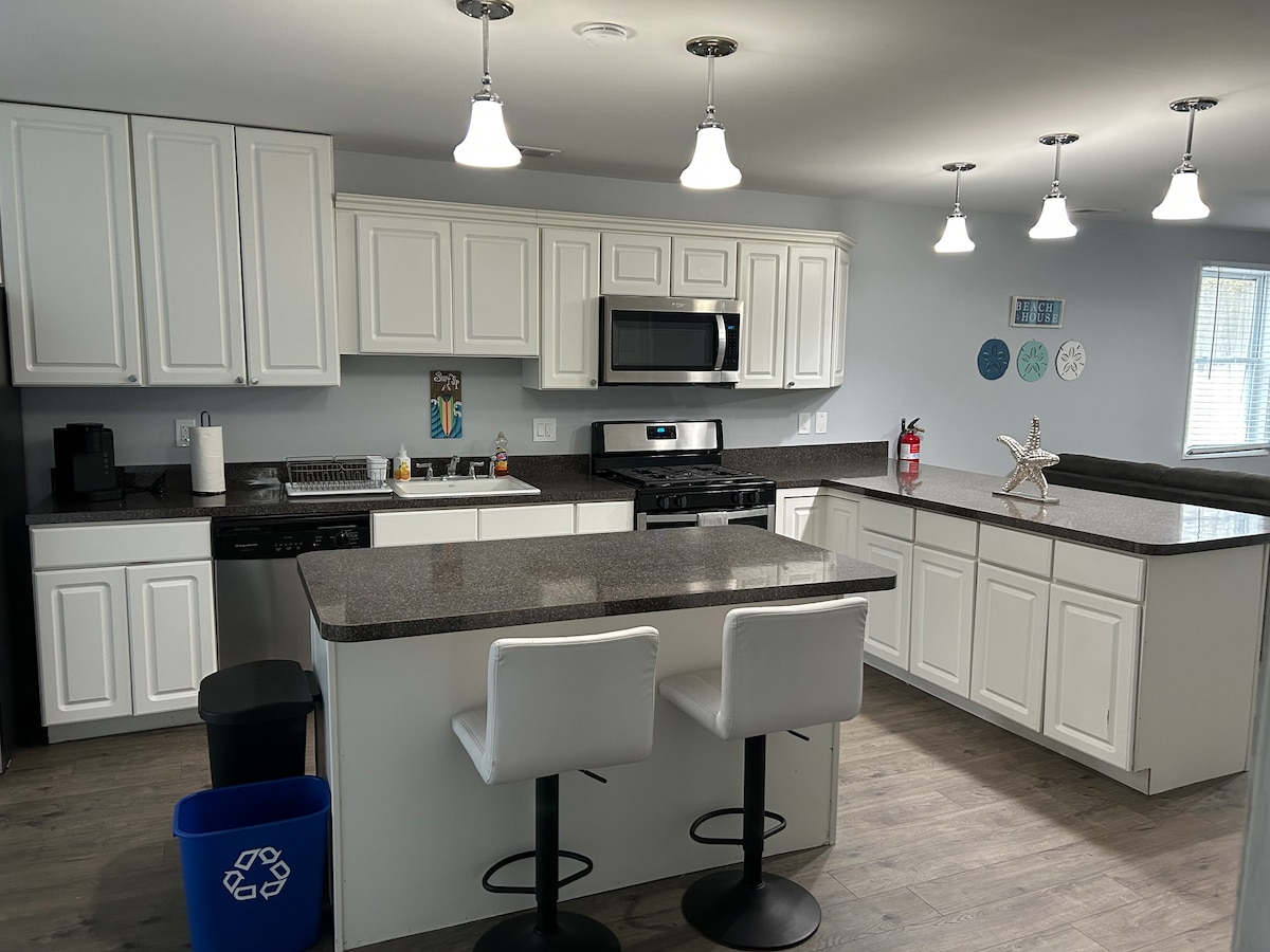 Enjoy the shore at this fully renovated luxurious beach house. This 3 bedroom 2 bath (with sleeper Sofa) can sleep up to 12 people. The space has been recently renovated. New kitchen, new bathrooms, brand new carpets, and hardwoods. An amazing in ground heated pool, with 8ft privacy fence highlight the back yard. The back yard also features ample seating, a fire pit, and a brand new 7 person hot tub. This is the perfect getaway for any family or families looking for fun at the jersey shore.