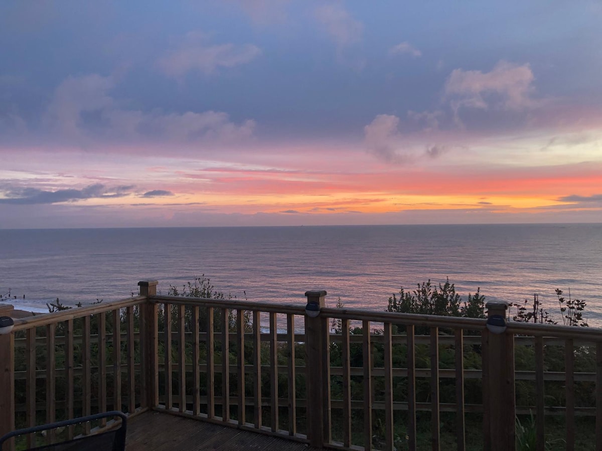 Holiday chalet on quiet site in an area of Outstanding Natural Beauty. Fantastic sea views: watch the sun (and moon) rise from the comfort of the bedroom or living room! Perfect for long walks (beach and country) and quiet relaxing times. No internet to distract from nature! Simple but comfortable accommodation with good heating system. Take your own bed linen & towels. Beach is dog friendly all year round. Easy parking with short walk to chalet. Steps to beach.