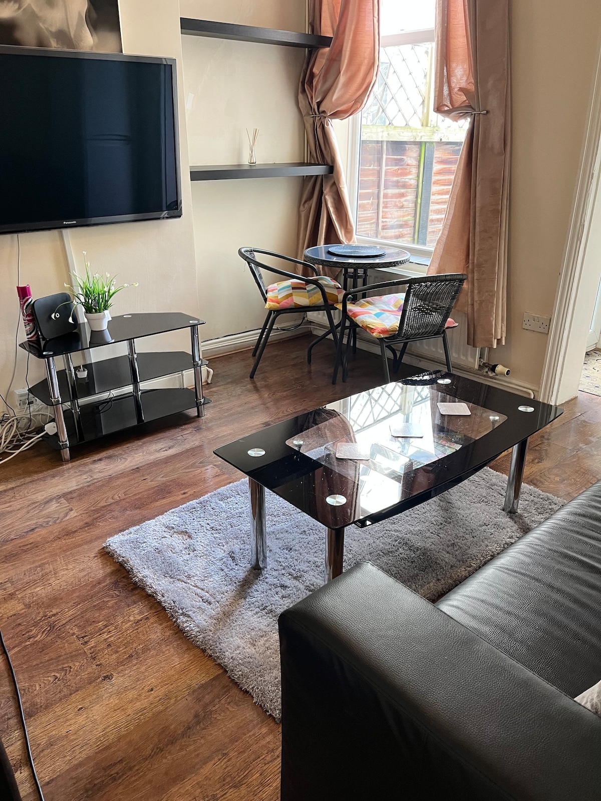 A light bright modern space in a self enclosed flat. City center is 2 miles away and on a bus route Parking at front of property is free and sercure Wifi included for guests TV tea/coffee and cereals available Fridge freezer Washing machine iron/ironing board cooker and cooking utensil's kettle/plus cutlery and dishes toaster Coffee maker micro wave bedroom has fitted full size double wardrobes with full mirror doors access to a garden area to enjoy the evenings