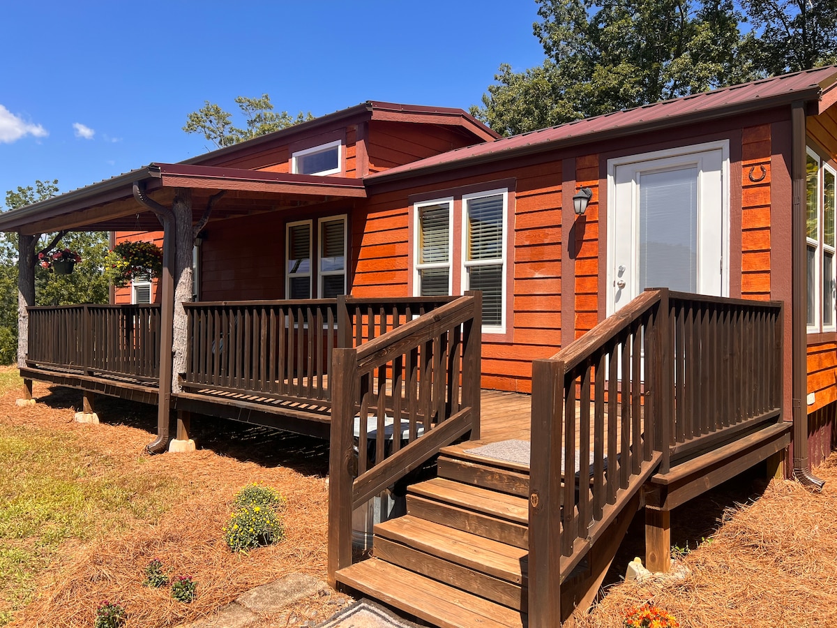 Unique place has a style all its own. It is private, one year old now and hand worked by owner. NO PETS. Small 350+ sq feet. Open floorplan, no separate bedroom. Large front porch with wooden rockers. Kitchen is very small, with most everything except for oven. Has two small ponds with fish in them loaner poles and tackle in closet no license required. It's in the woods there is wildlife, stream and old growth trees to view. Park style charcoal grill in the yard. Hammock, picnic area at ponds.