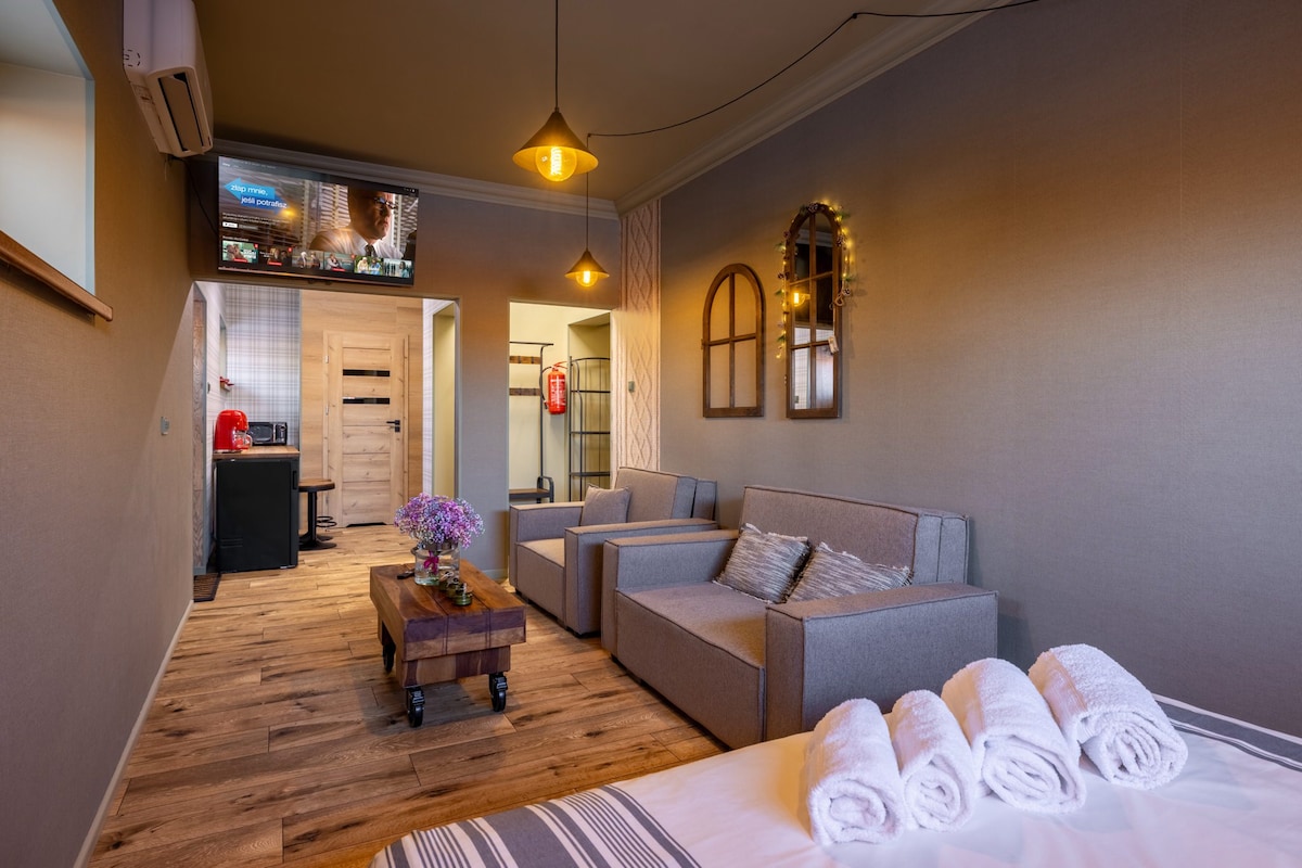To stylowe miejsce na pobyt jest idealne dla osób chcących odpocząć od miejskiego zgiełku w otoczeniu przyrody.