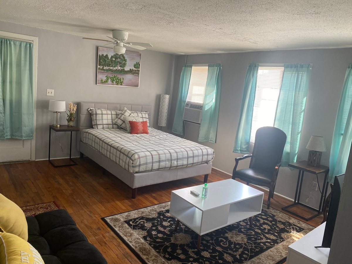 Discover comfort and charm in this stylish 1BR/1BA apartment inside a 1965 historic gem. Unwind with cozy decor, unique art, and all the essentials—TV, toiletries, and a full kitchen. Minutes from downtown Valdosta, VSU, Moody AFB, and the hospital. Ideal for business, travel, or a weekend escape—this space offers the perfect mix of warmth, style, and unbeatable location