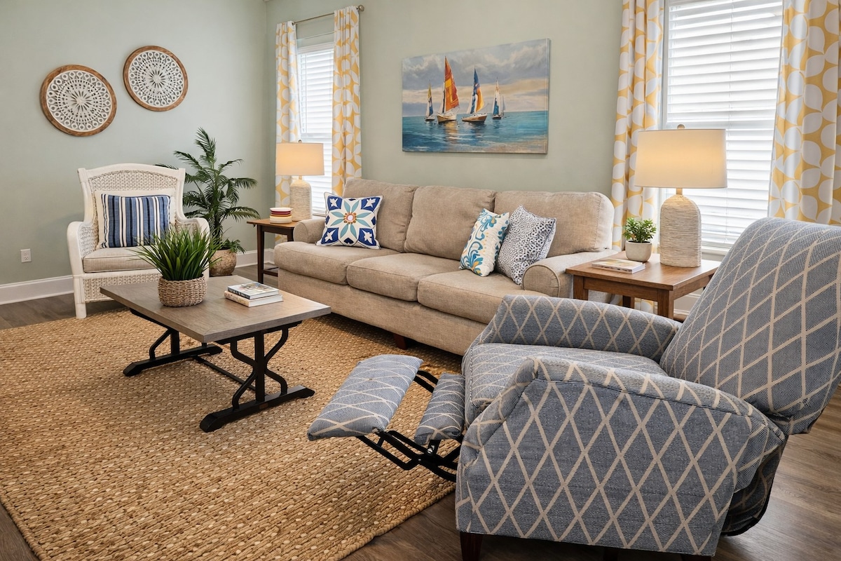 加大双人床套房 + 躺椅!MAFB/VSU,4 台电视 + 烧烤炉