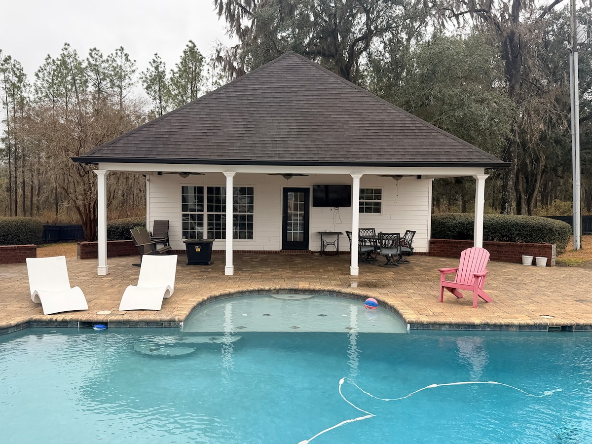 Fully loaded 4BR/2BA home with a movie theater for epic movie nights or football, a fully air-conditioned game room featuring arcade-style Pac-Man, ping pong, foosball, Jumbo Jenga, Giant Connect Four, etc! Cook in the open island kitchen, unwind by the backyard fire pit, or let the kids play in the fenced yard. Just minutes from VSU, South GA Medical Center, Moody AFB, top shopping centers, and Wild Adventures. Perfect for families, friends, or anyone looking for fun and comfort in Valdosta!