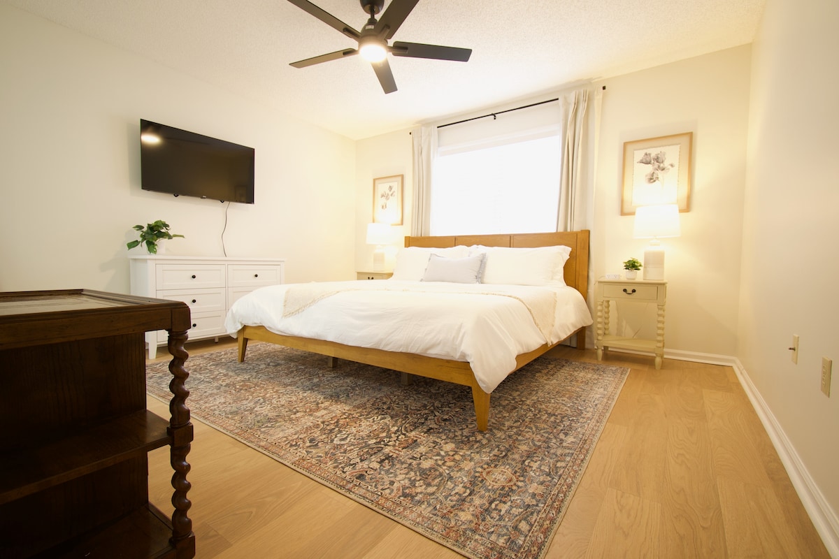 加大双人床套房 + 躺椅!MAFB/VSU,4 台电视 + 烧烤炉