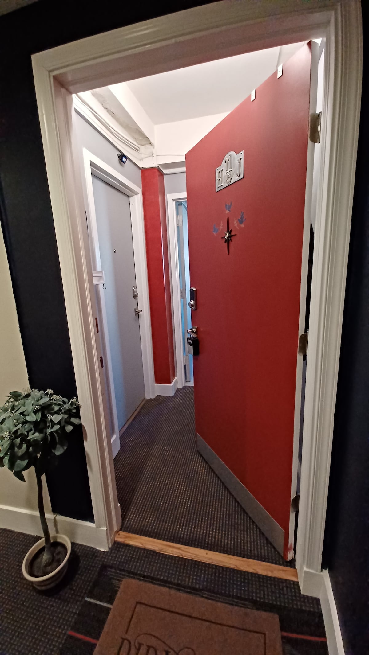 Artists and creatives are welcomed! Stay at our 1920 rowhouse with its mix of 70's era textiles and contemporary style. Please enter the shared hallway and find the entrance to your apartment on the right. Across from the coat rack. Moon Base (ment) is the lower level private full apartment, with fully stocked kitchen w/electric cooktop dishwasher, garbage disposal, comfy double bed, private bath w/shower, laundry and your own patio off the kitchen and access to small patio with lighting.