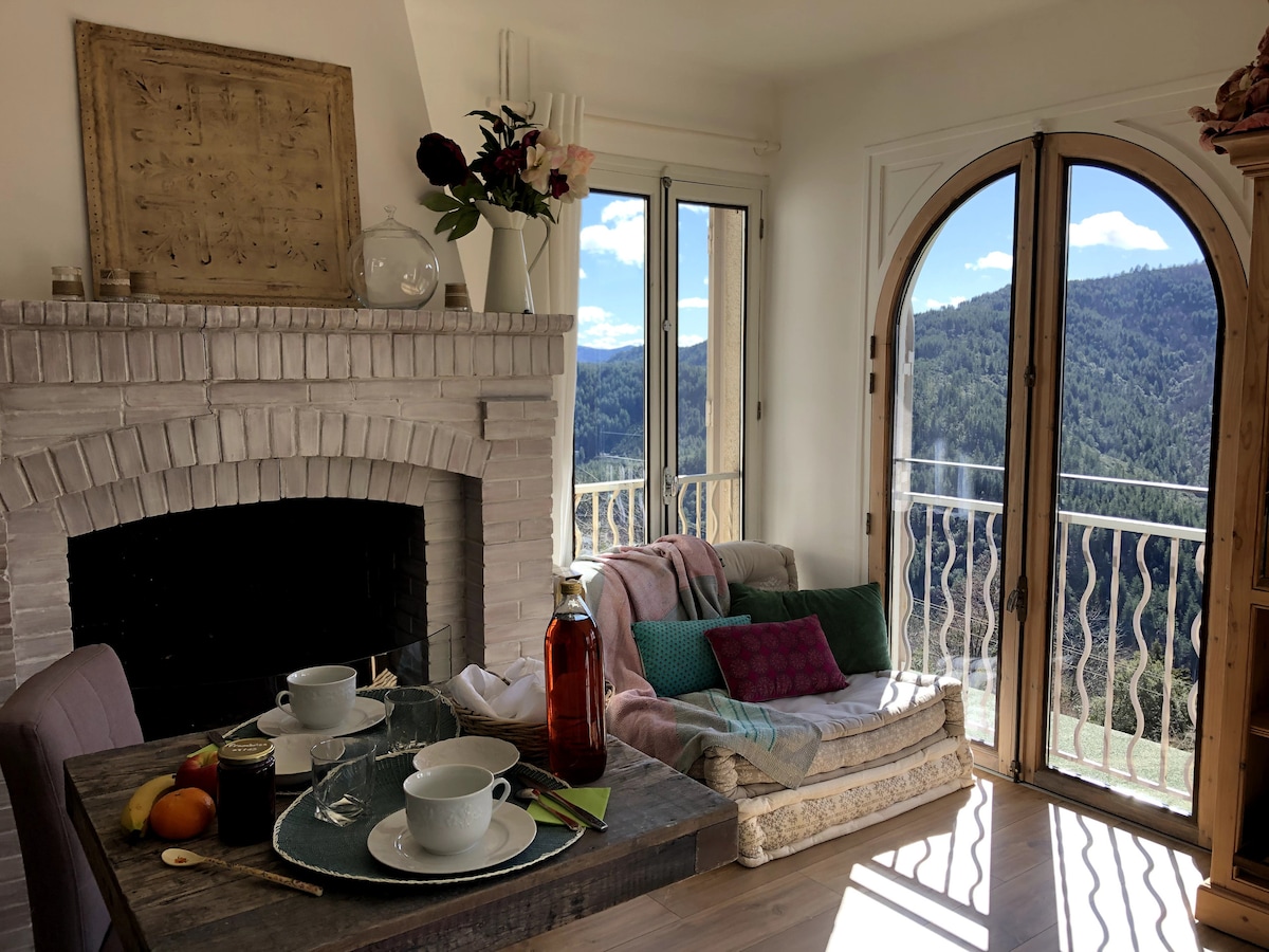Venez vous ressourcer dans ce logement spacieux et serein au 1er étage de notre maison d'hôte située dans un hameau au cœur des Cévennes du Sud, dans la réserve de ciel étoilé à 1 km à pieds de la rivière du Gardon. Proche de Saint Jean du Gard, à la recherche d'un environnement naturel et calme vous serez charmés et profiterez de l'instant présent. Amateur de lecture, la grande bibliothèque de notre gite vous captivera. Vous aurez un espace dédié sur la terrasse de notre mas pour vos repas.