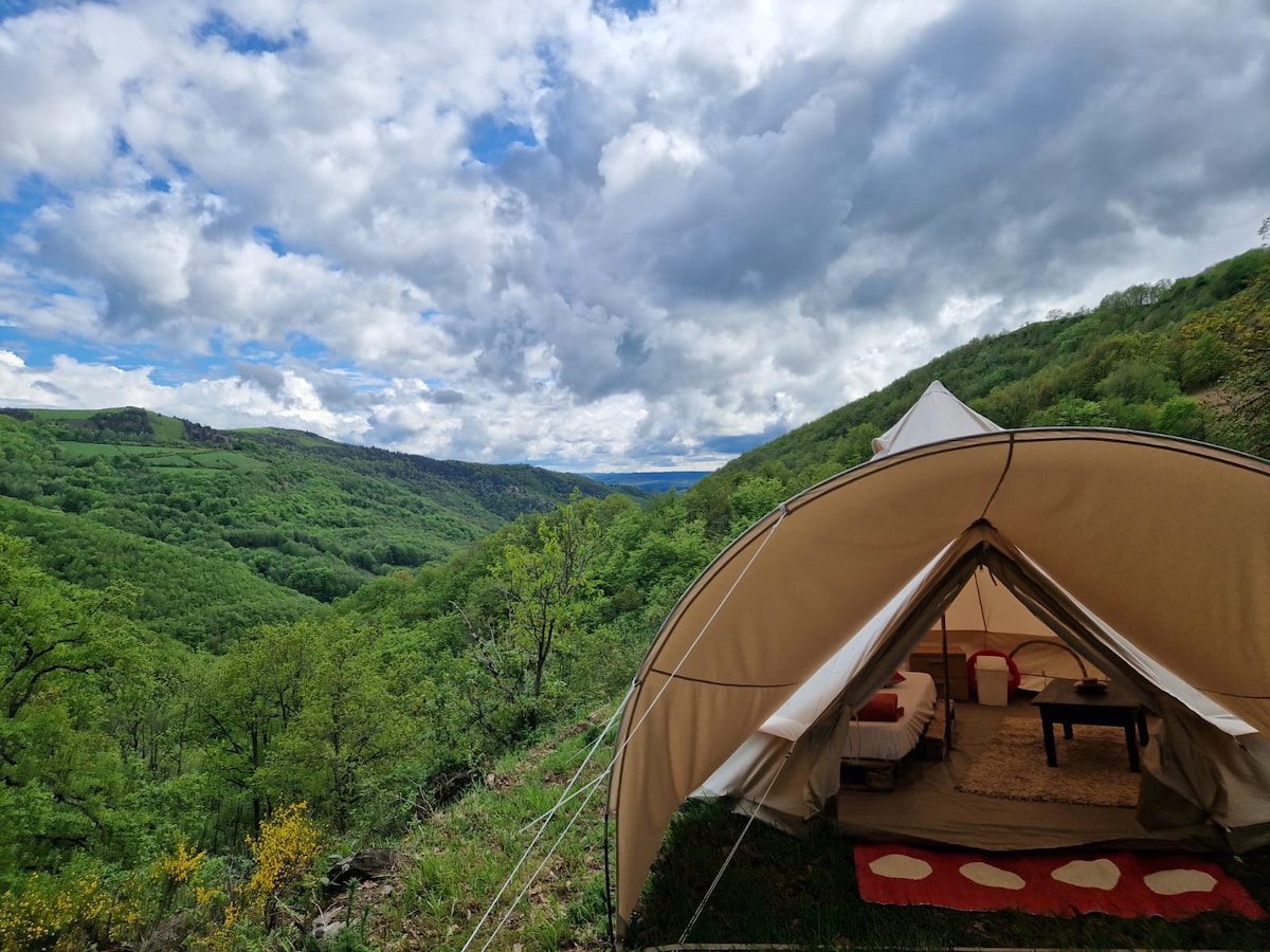 Belle tente pour soirée en amoureux au cœur de la nature cévenole. A proximité d'un charmant village où vous trouverez une boulangerie, une épicerie, un bar etc... notre tente aménagée vous attend pour profiter de toutes les richesses naturelles du parc National de Cévennes.