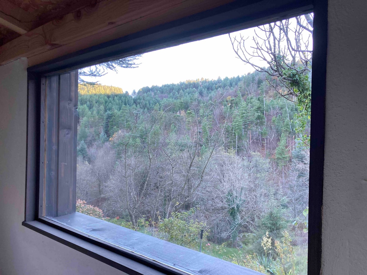 Let me introduce you to the "tiny house" known as Le Secret du Moulin, a small independent granite house of 20 m2, part of the old mill of Villefort, nestled in a bucolic setting at the bottom of my garden. Located on the banks of the river La Palhères in a peaceful location near to the centre of the village where you will find a bakery, butcher's shop, delicatessen, 2 small supermarkets, pharmacy, vegetable shop, post office, snack bars and restaurants and everything within walking distance.