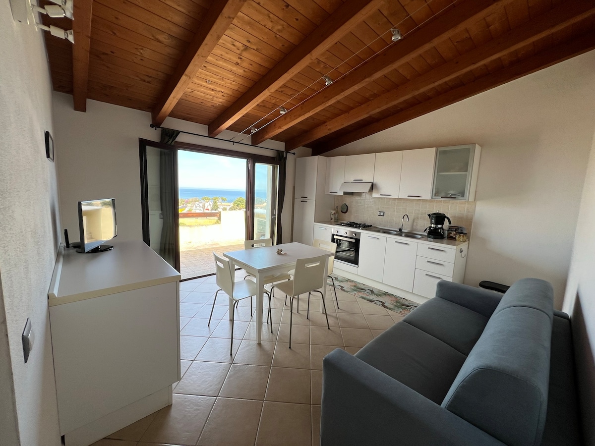 Prestigious Attic on the Sardinian hill, in a modern and family-friendly setting, offering a peaceful and comfortable experience just a stone's throw from the sea and the port. The property features a bright living room with a premium sofa and Smart TV, a kitchen with the latest appliances, a double bedroom, a bedroom with bunk beds, and a full bathroom. Upstairs, there is a fabulous terrace! The accommodation includes a private parking space within the complex.