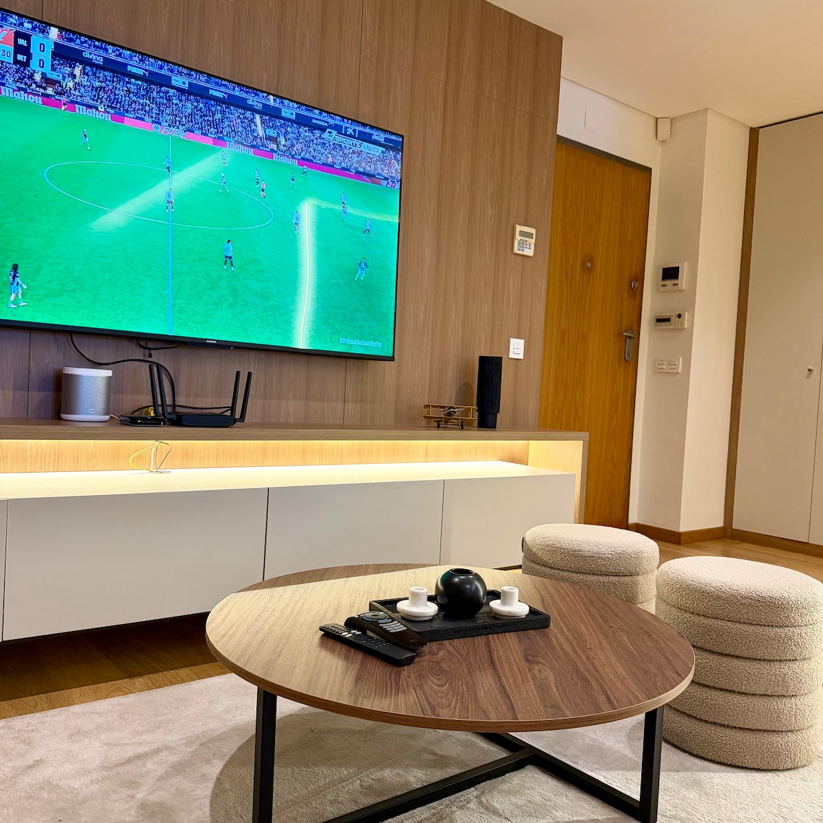 Welcome to your luxurious home-away-from-home in one of Luanda’s most prestigious new developments. This upscale 1-bedroom apartment offers a unique blend of elegance and comfort, featuring a warm wood-inspired design, high-end finishes, and modern conveniences that cater to both business and leisure travelers. Unwind in style with a spacious balcony, a fully equipped kitchen, a 65" Smart TV, and ultra-fast WiFi. The building provides 24/7 security and private parking for your peace of mind.