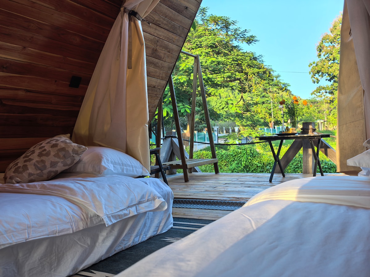 Mango Bungalow is a unique triangular wooden cabin located in the center of town, just steps away from restaurants and local cafés. Inside the bungalow, you can enjoy beautiful mountain views right from your window. The space is fully equipped for a comfortable stay, and our friendly team provides warm, attentive service.