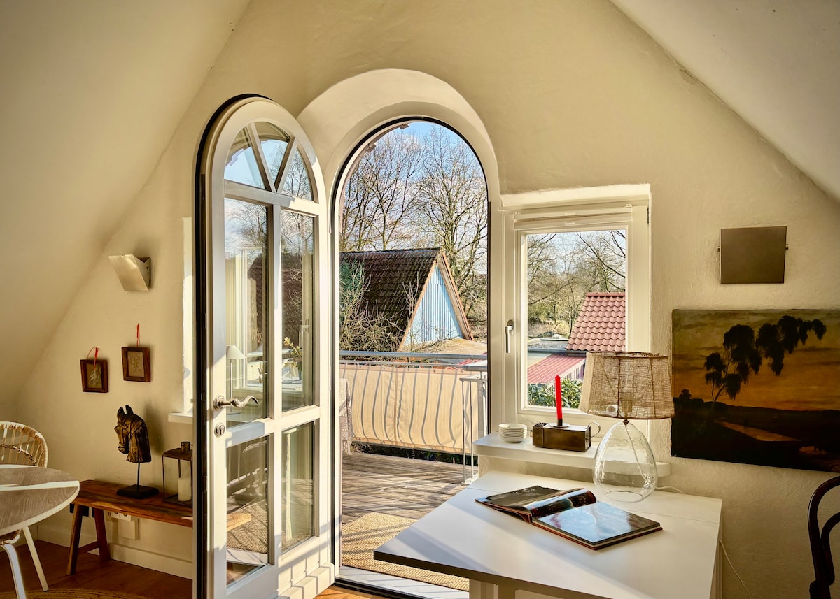Welcome to the “living work of art” by the universal artist Bernhard Hoetger! Our holiday apartment is located on the wooded southern slope of the Weyerberg in Worpswede and promises an art-oriented holiday in nature. Door reliefs, ceiling paintings, sculptural wooden beams: original design elements enliven the character of the expressionist house that Hoetger built in 1922. Follow in Hoetger's footsteps and experience the harmony between art and nature in this unique accommodation!
