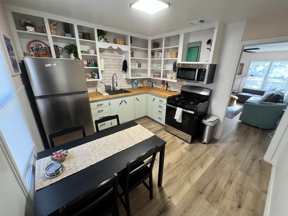 West LBK Stay is Lubbock's newest Airbnb with all the necessary amenities! This brand new, spacious house boasts three bedrooms and two bathrooms making it perfect for any occasion. This home is a perfect combination of serene and inviting, making it great for a weekend getaway or a quick business trip. The large backyard is equipped with enough grass to keep your furry friends happy, but also gravel to set up a nice game of corn hole on one of lubbock's amazing summer nights.