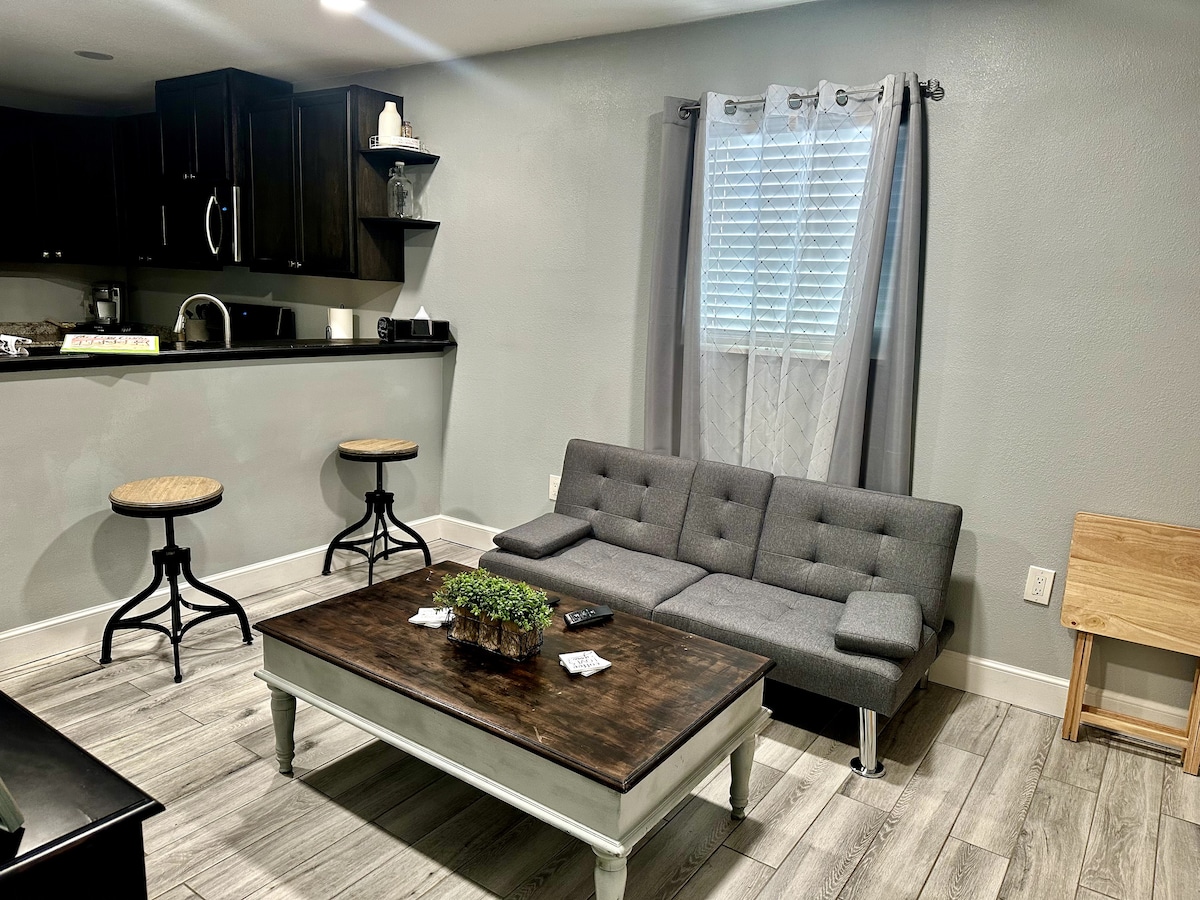 Welcome to your very own private, luxurious retreat! The Luxe Retreat has been completely renovated & thoughtfully designed to create the ultimate Lubbock Airbnb experience! The use of a moody color pallet, organic textures, & unique decor breathes life into the space creating a fun, chic, & relaxed atmosphere. Find yourself at home with the amenities provided such as quality coffee, WIFI, & TV with Roku (Netflix, Amazon Prime). Perfect little getaway for one or two to comfortably enjoy!