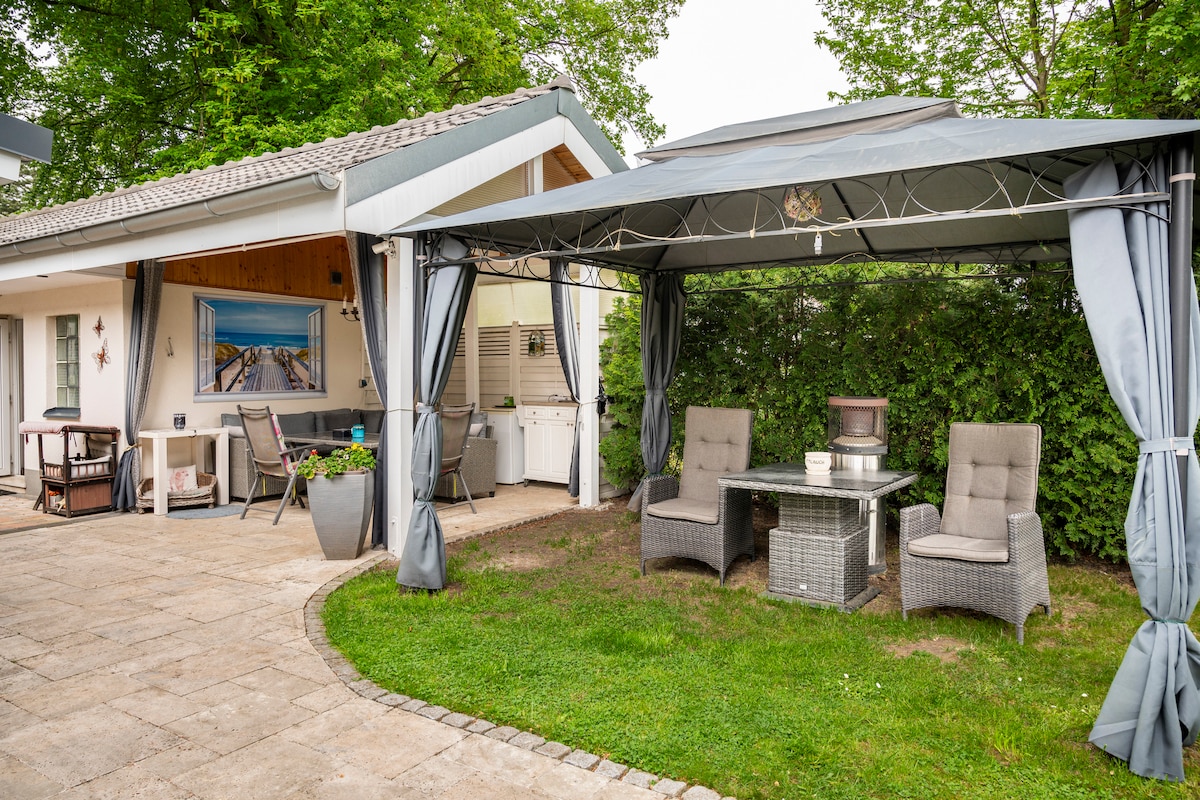 Der komfortable Bungalow liegt idyllisch zwischen Dünen und Grünflächen eingebettet und ist zur Alleinbenutzung. Das Meer ist in wenigen Minuten zu Fuß erreicht, die neu angelegte Strandpromenade lädt mit ihren zauberhaften Cafés und der Seebrücke zum Flanieren ein. Timmendorfer Strand mit seinen edlen Boutiquen & Restaurants ist nur einen kurzen Spaziergang am Meer entfernt!