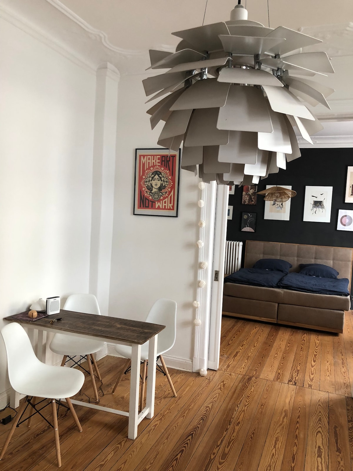 The apartment was renovated in 2020 and completely refurbished in the process. It accommodates up to four people and is super centrally located. If you like action, the river promenade is about 2 minutes away. If you prefer a calm place, the flat is located on the second floor and has a peaceful roof terrace overlooking the garden. Walking to the train station (connection to Lübeck) takes 5-10 minutes. Although you can't see the water, you can see the big ferries from the bedroom window.