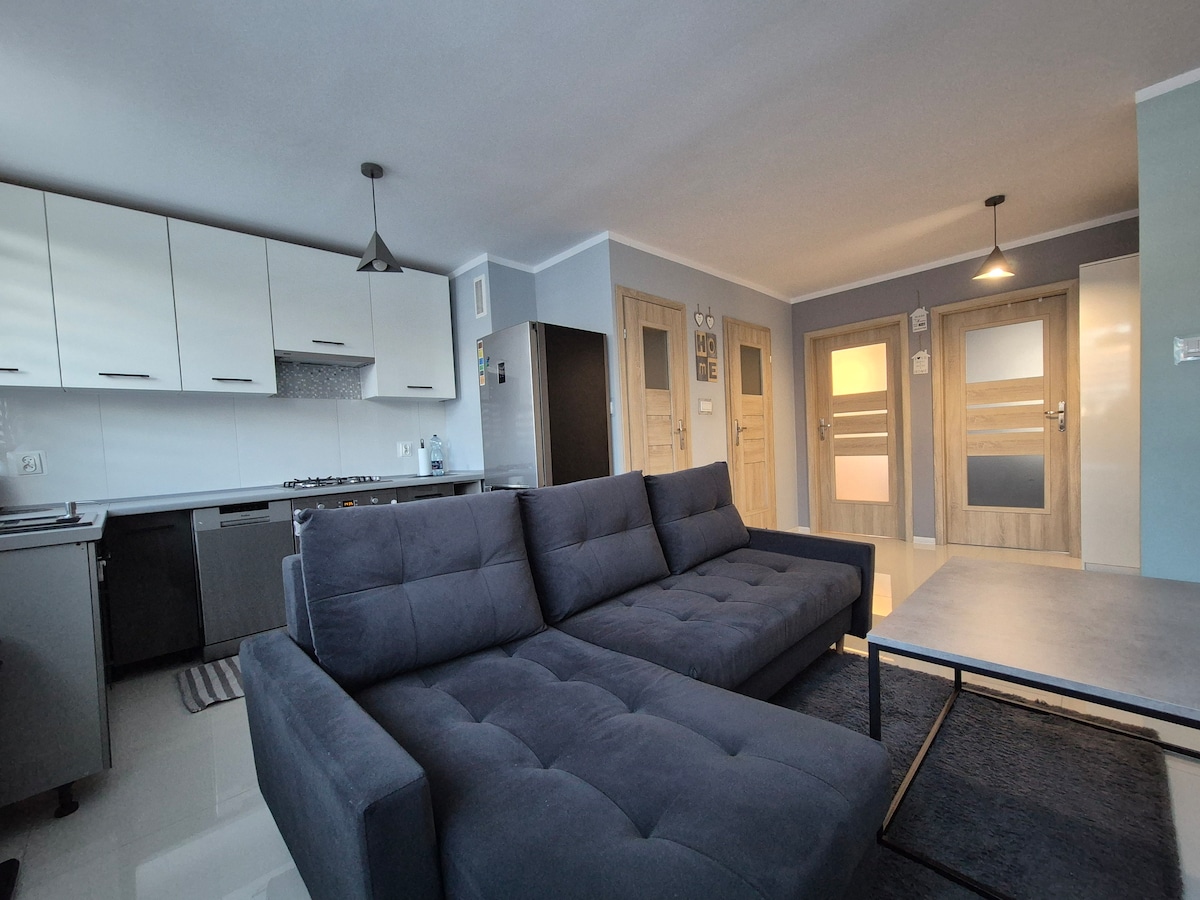 Appartement neuf, chaleureux, de 40 m2, avec balcon, près du centre ville de Lubin, non loin de la route S3 et proche de la gare. Le logement se compose d’une cuisine équipée ouverte sur le séjour, d’une salle de bain avec machine à laver, ainsi qu’une chambre à couchée séparée. Salon lumineux avec un canapé convertible et une télé.