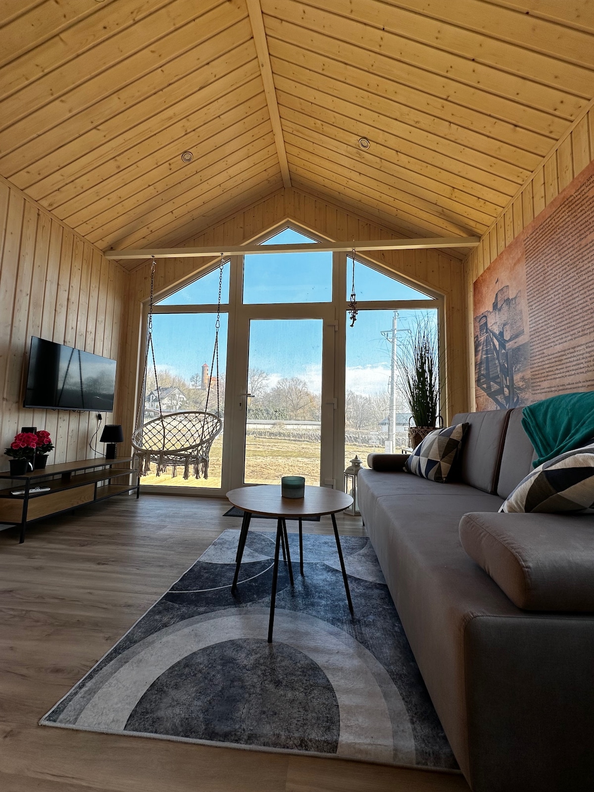Located on the border of Mazowieckie and Łódzkie, right next to the Bolimów Forest, our cabin is a perfect nature getaway. The intimate space helps you unwind, and the nearby Rawka River is great for kayaking or a refreshing dip. Guests enjoy forest walks, bike rides, and relaxing on the terrace bed. Suntago water park, the largest in this part of Europe, is just a 15-minute drive away.