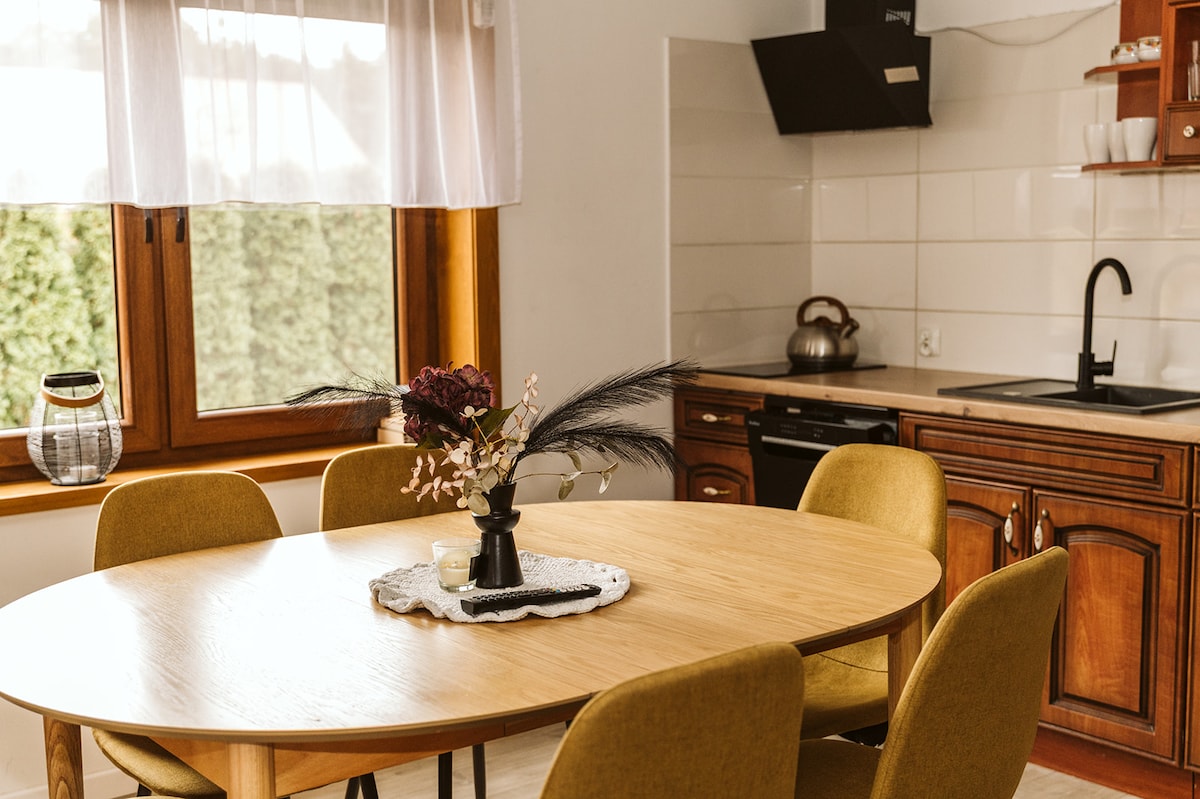 Forget your worries in this spacious and serene space. Lovely, huge room (50sq meters floor) above the garage and private bathroom and kitchenette located on garage level, with separate entrance.The place is located in the quiet, full of nature, beautiful mansion suburb of Warsaw, in peaceful area near the forest and the lake. Comfortable road connection makes it easy to get to the Warsaw center or airport within 15min time. Attention: steep stairs between the room and bathroom floor.