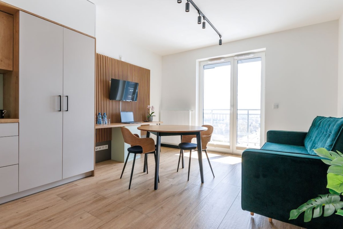 Hi! I’m Bartek, and I invite you to my apartment with a stunning panoramic view in the heart of Lublin! A fully equipped apartment with a queen-size bed in the bedroom, a sofa bed in the living room, plus a fully equipped kitchen and bathroom. 👤 Comfortable for up to 4 guests 🚶 Great location – close to attractions & restaurants 🏊🏻♂️ Access to SPA: pool, gym, jacuzzi, sauna 🦮 Pets welcome 🚗 Paid parking available Any questions? Feel free to ask! 😉