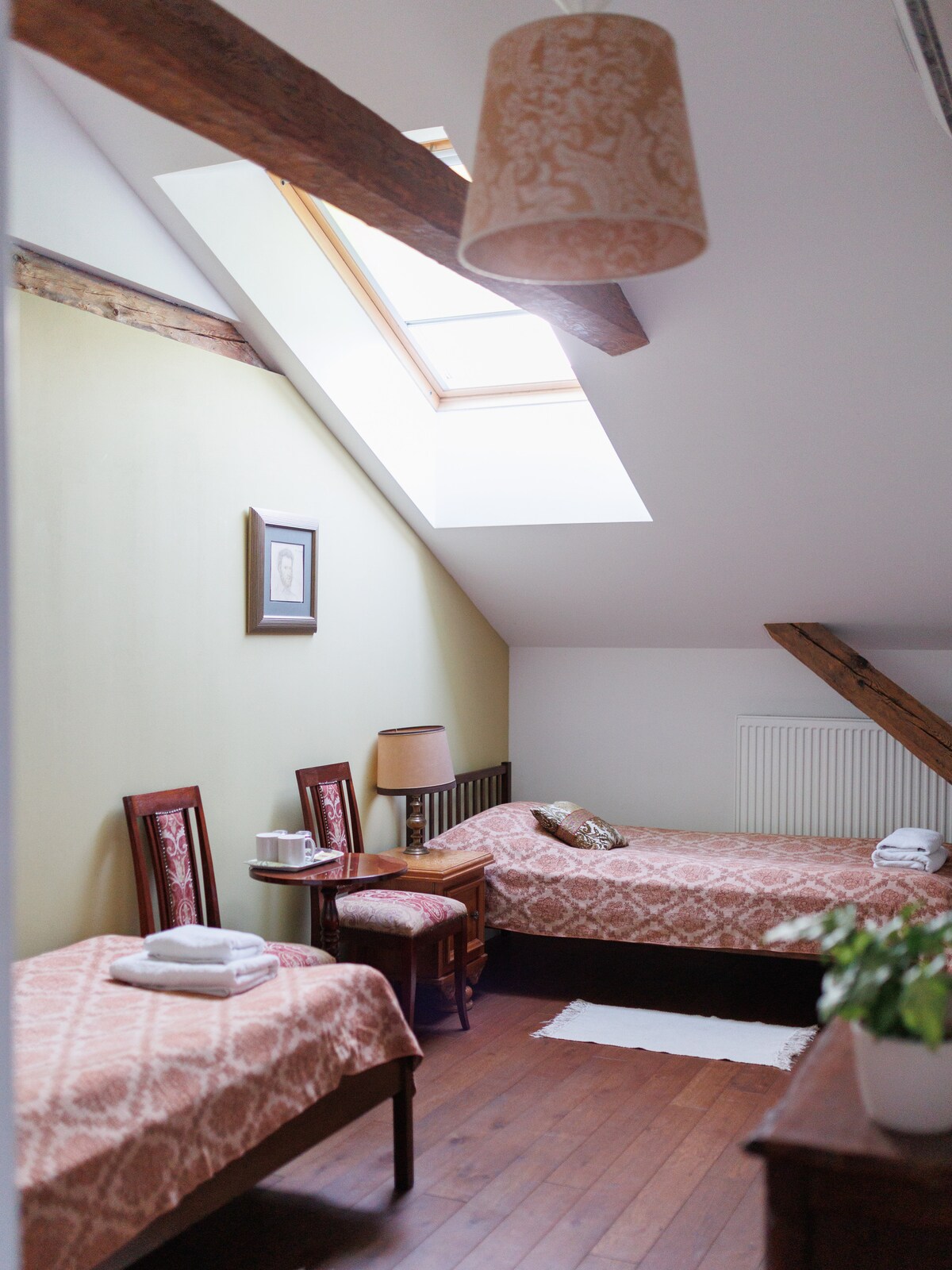 Całe piętro w jednorodzinnej willi.Komfortowo wyposażone. Oryginalny design. Tv kablowa, wifi. Piękny widok na park i kościół.W pełni wyposażona łazienka z prysznicem,stanowisko z krzesłem do make up.W salonie sypialnym jest kącik kawowy z-kawa, herbata cukier ,szklanki ,filiżanki .Jest również lodówka z małym zamrażalnikiem .Okolica bardzo cicha,tylko zabudowa willowa.Doskonałe miejsce na wakacje,biznes.Bezpeczny pobyt - monitorowy teren.