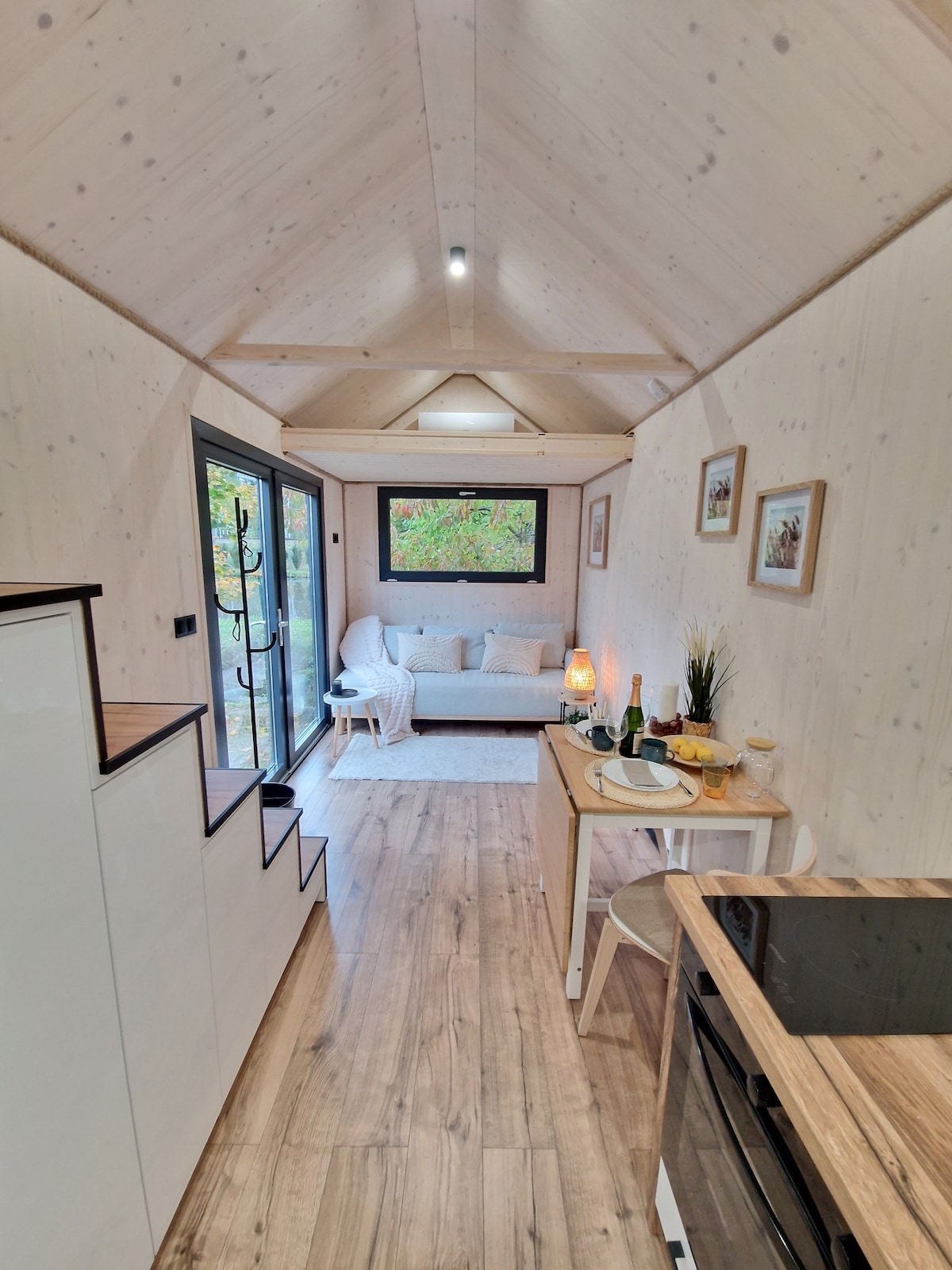 Komfortowy parterowy dom (35mkw) z prywatnym zadaszonym tarasem z ogrzewaniem (15mkw). W pełni wyposażona kuchnia, kontynetalnye łóżko Queen Size z warstwą Memory Foam, ponadwymiarowy prysznic XXL z deszczownicą. Prywatna wanna z hydromasażem na świeżym powietrzu. Czynne w zimie przy temperaturze powyżej -3st Celsjusza. Budynek otoczony prywatnym półdzikim ogrodem przechodzącym płynnie w nadrzeczne łąki. W części wspólnej ogrodu hamaki, grill węglowy, miejsce na ognisko, meble ogrodowe.