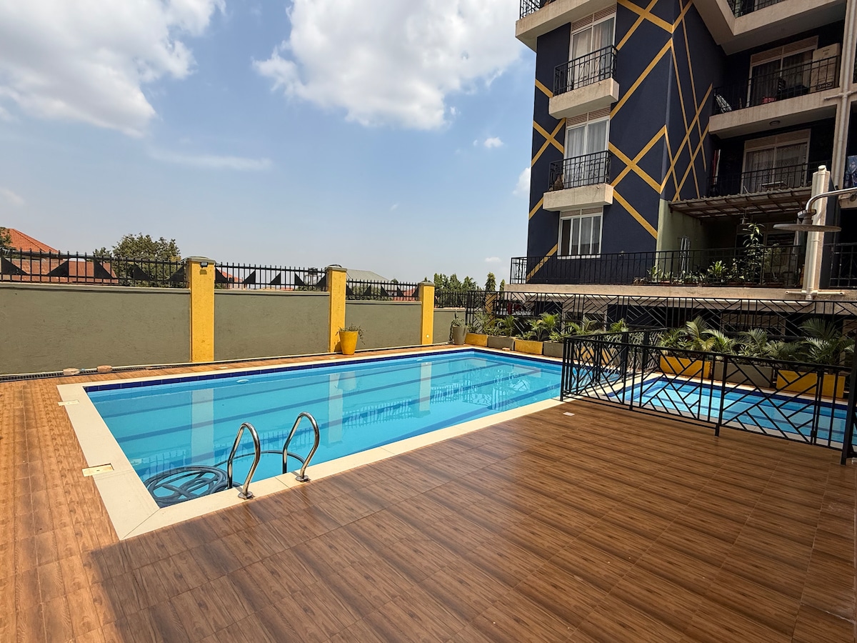 Experience a cozy modern one-bedroom retreat with stunning views of the Najjera neighborhood. Enjoy a spacious balcony, a refreshing swimming pool, and the convenience of an elevator. The apartment includes a washer-dryer combo, a stylish interior, and easy access to the main road. Perfect for relaxing stays with comfort, scenery, and seamless convenience all in one place.