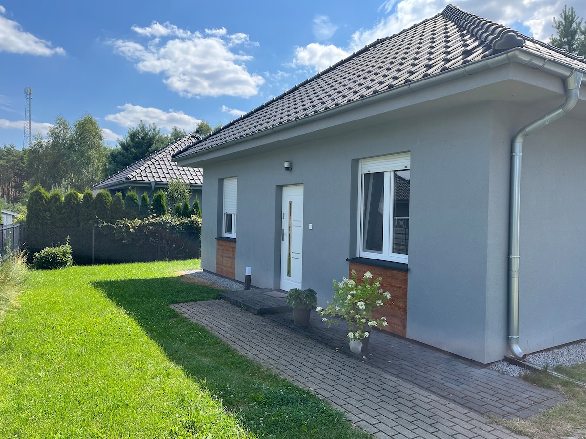 Przytulny domek parterowy w okolicy Wolsztyna. Z tyłu domu duży ogród z tarasem, z widokiem na jezioro i pola. 2 osobne sypialnie oraz duży salon z aneksem kuchennym, kominkiem i telewizorem. Wolsztyn to urokliwe miasteczko turystyczne. W okolicy liczne atrakcje, m.in. jeziora, plaże, wypożyczalnie sprzętów wodnych, lasy, liczne ścieżki piesze i rowerowe, basen, muzea, restauracje, puby i wiele innych atrakcji turystycznych i kulturalnych.