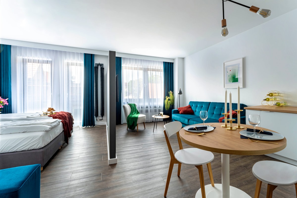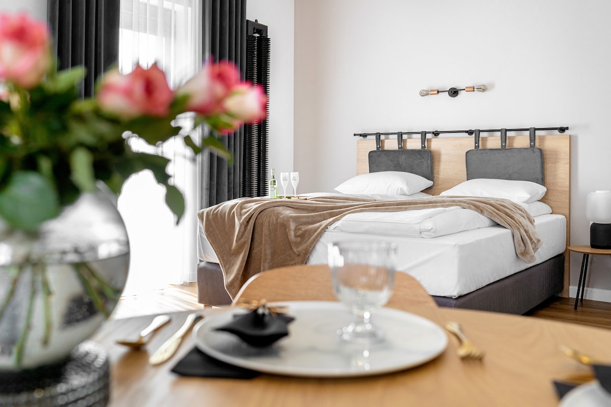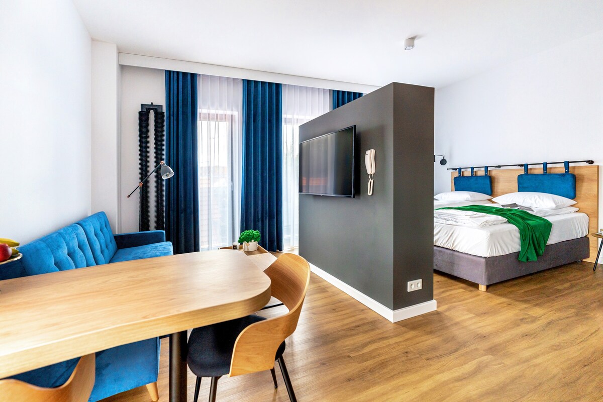 Apartamenty Żary to butikowy kompleks stylowo urządzonych i kompleksowo wyposażonych apartamentów. Nasi goście mogą bezpłatnie korzystać z monitorowanego parkingu. W każdym apartamencie znajduje się w pełni wyposażona kuchnia ze zmywarką, płytą indukcyjną, piekarnikiem, lodówką, przyborami kuchennymi oraz ekspresem ciśnieniowym do kawy. Skorzystaj z uroku tego stylowego, ekskluzywnego miejsca.